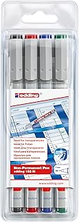 Edding e-141 f/4 s Set de 4 Marqueurs Permanents pour la Rétroprojection 0,6 mm Noir/Rouge /Bleu/Vert