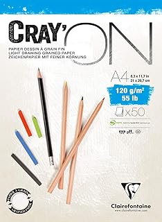 Clairefontaine 975020C - Un bloc encollé de papier dessin Cray'on 50 feuilles extra blanches 21x29,7 cm 120g