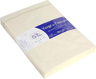 Lalo 21416L - Un paquet de 25 enveloppes doublées gommées 11,4x16,2 cm, Vergé de France, Ivoire