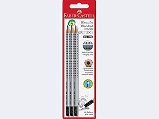 Faber-Castell – 3 Crayons GRIP 2001 avec Tip en caoutchouc, dureté : B, couleur du corps : argent, HB Radierspitze, 1