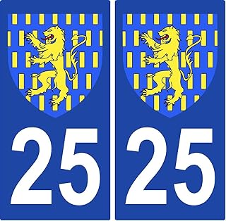 2 Stickers de plaque d'immatriculation auto 25 Franche-Comté - Armoiries