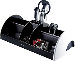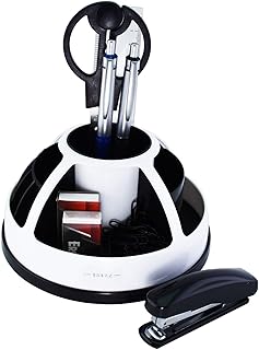 Exerz Organisateur Bureau/Pot à Stylo Rotatif pivotant avec Ensemble de Papeterie - Ciseaux, Agrafeuse, Staples, Règle, Gomme à Effacer Inclus - Bureau Ranger/Papeterie Organizer (Blanc)