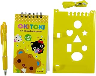 Kawaii Ensemble de papeterie - Okitoki Mini Notebook avec un stylo sur Presse-papiers - Jaune