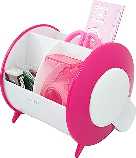 Exerz Organisateur de Bureau Rotatif à 90 degrés avec une Ensemble de papeterie - Ciseaux de sécurité (PAS Aigu), Règles, Dévidoir de ruban adhésif, Gomme, trombones INCLUS - Taille moyenne Papeterie Organisateur / Pot à stylo / Bureau Ranger - EX8986 Rose