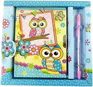 Cute Owl Pen et ordinateur portable avec la serrure dans la case Ensemble de papeterie (Bleu)