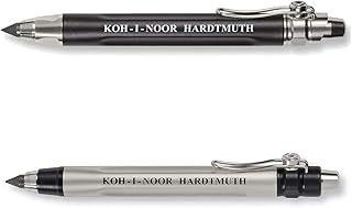 KOH-I-NOOR 5311 et 5312 - Porte-mine en métal avec embrayage mécanique - Épaisseur de mine 5.6 mm - ensemble de 2 - noir et argent
