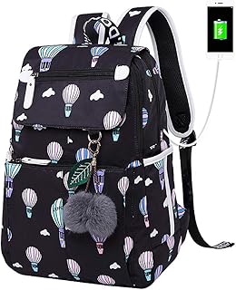 Sacs Scolaires Collège Sac À Dos Filles/Garçons Sac d'école Adolescent Daypack avec Port USB Sac de Voyage Toile Noir