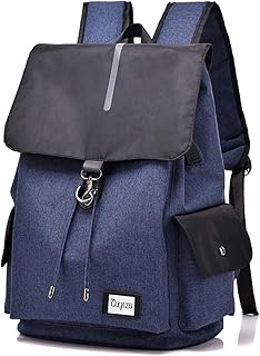 Sac à Dos en Toile Sacs d'école pour Adolescent Filles et garçons College Sac à Dos rayé Correspond à Ordinateur Portable Ordinateur Portable 15,6 Pouces avec Port USB de Chargement-Bleu