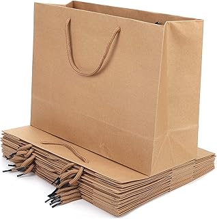 10 Pièces Sacs en Papier Kraft Grands Sacs Cadeaux Noël Sac à Main avec Poignée Pochettes Cadeaux Eemballage Rrecyclable Sacs de Friandises Sachet Fourre-tout pour Anniversaire Mariage Fête Shopping